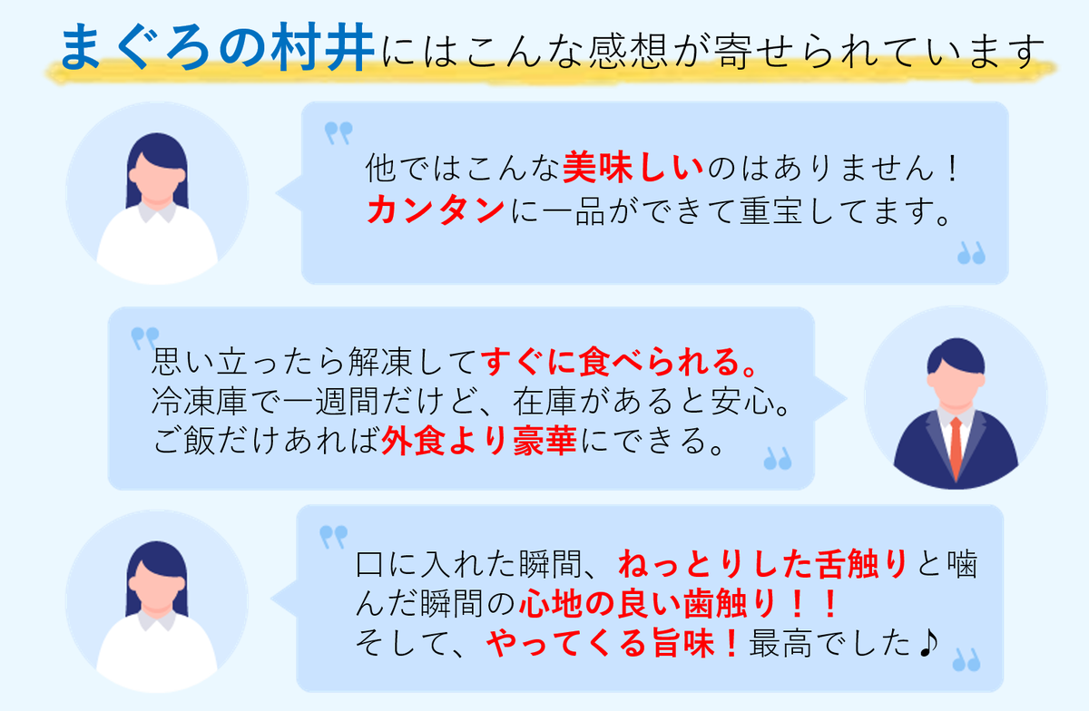 瞬間冷凍で鮮度を保っているので、生のまぐろよりも新鮮なんです!