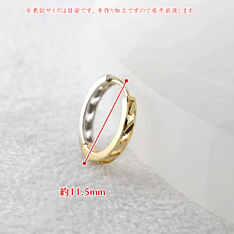 2色のカット面がキラキラと輝き、リバーシブル使い出来るフープピアス