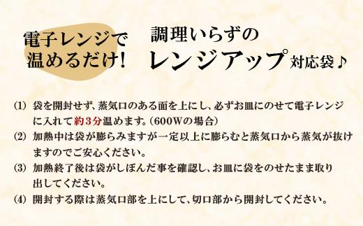 (レンジ調理対応包材です)凍ったまま、包材の蒸気口を上にして、600Wで3分ほど加熱して下さい。