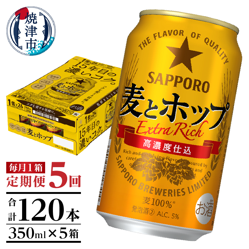 サッポロ麦とホップ350ml:1ケース(24本)×5回(毎月1箱)