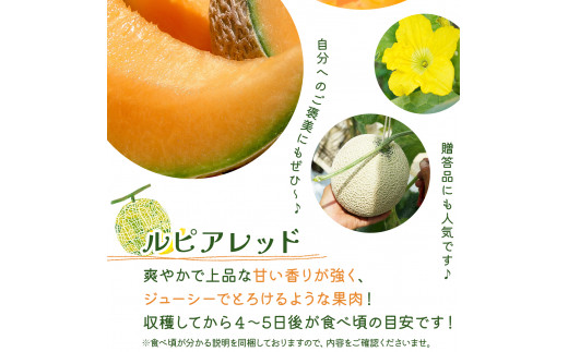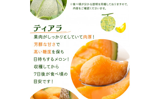 ※収穫状況や発送のタイミングにより、お送りするメロンの品種「ティアラ」「ルピアレッド」がランダムになります。お選びいただくことはできませんので、予めご了承ください。
