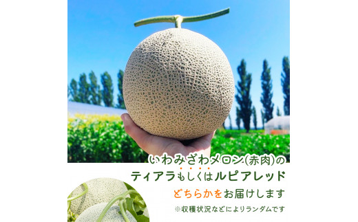 発送期間の中で収穫状況により、いわみざわメロン(赤肉)の「ティアラ」もしくは「ルピアレッド」どちらかを発送になります。