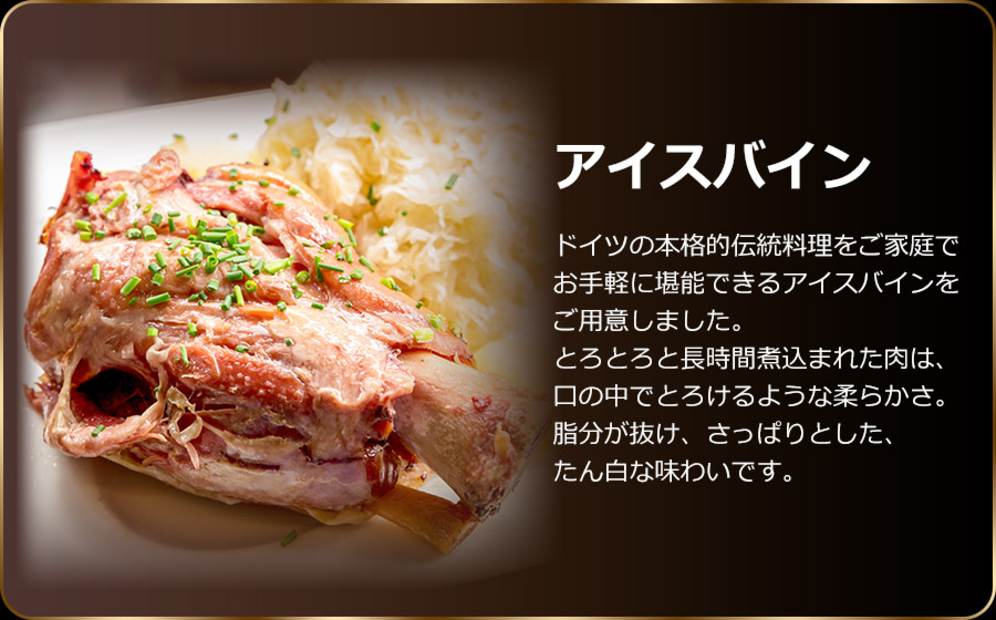 ドイツの本格的伝統料理をご家庭でお手軽に堪能できるアイスバインをご用意しました。