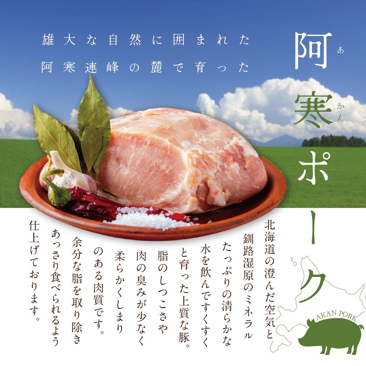 北海道の澄んだ空気と釧路湿原のミネラルを使用した北海道産豚ロース肉(阿寒ポーク)を特製オーブンで約50分かけてじっくりと焼き上げ、旨味をぎゅっと閉じ込めました。