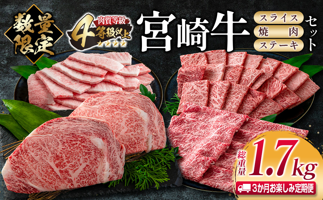 この機会に、ぜひ『≪3か月お楽しみ定期便≫宮崎牛(スライス・焼肉・ステーキ)セット』で宮崎牛を存分にご堪能ください。