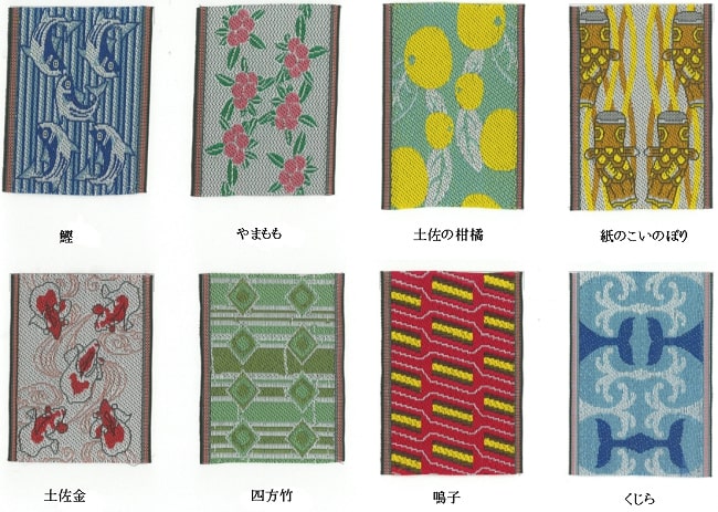 畳縁は、画像の8種類からお選びいただけます。(指定がない場合は、「鰹」でお作りします。ご了承ください。)
