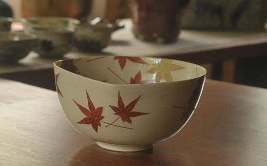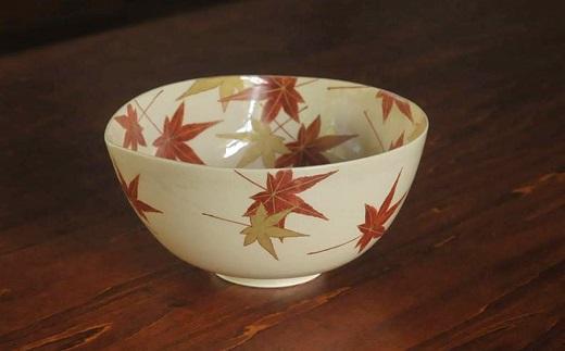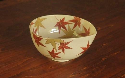 錦のように鮮やかな紅葉をこんもりとした沓形の鉢に描きました。