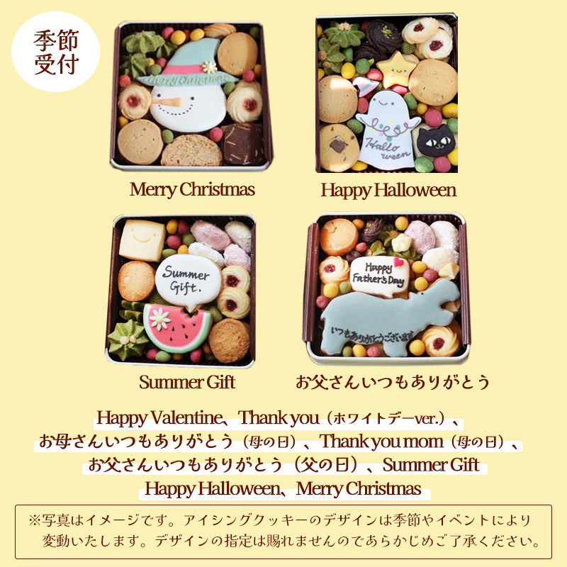 ※写真はイメージです。アイシングクッキーのデザインは季節やイベントにより変動いたします。あらかじめご了承ください。
