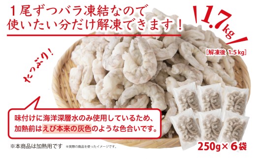 むきえび 1.7kg (背ワタ処理済み) 加熱用 冷凍 バラ凍結 小分け 【海洋深層水 のみで味付け】 特大 5Lサイズ バナメイエビ えび 海老 ebi 海鮮 甲殻類 魚介類 三重県 尾鷲市 製造 TY-3