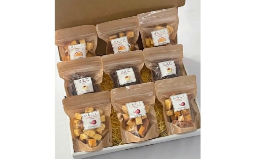 - ・オレンジ味×3袋 ・いちじく味×3袋 ・ココア味×3袋