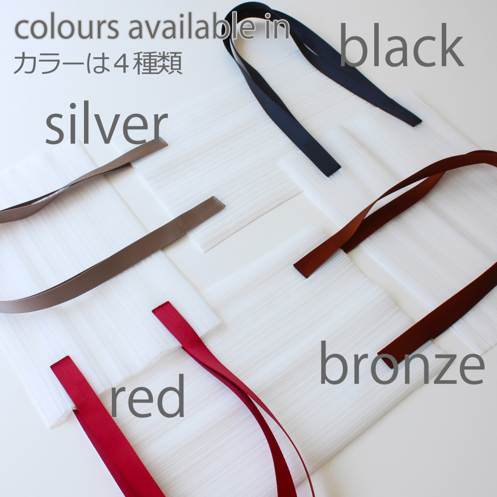 当返礼品は、自動車塗装用の手袋に使用される高密度ポリエステルメッシュを採用。厚さわずか90ミクロンという極薄素材を、専用ミシンと熟練の職人技で一枚ずつ丁寧に縫製しています。プリーツ加工を施し、超軽量ながら高い耐久性を実現。上品な透け感と独特の手触りをお楽しみいただけます。
