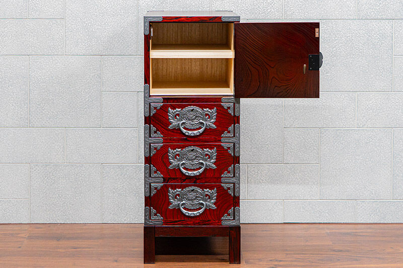 仙台箪笥の中でも極めてスリムなこのすきまチェストは、ご要望の声から誕生した、ほんの少しのデッドスペースを有効活用できる優れもの。