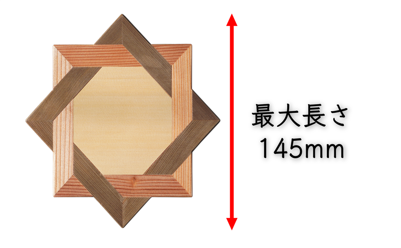 杉特有の、芯材部分の「赤身」、辺材部分の「白太」、そして土中に長い年月埋もれていた「神代杉」の3色を組み合わせた色彩豊かな配色です。
