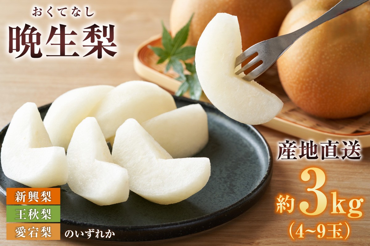 晩生梨(新興梨、王秋梨、愛宕梨)のいずれか3kg(5〜9玉)