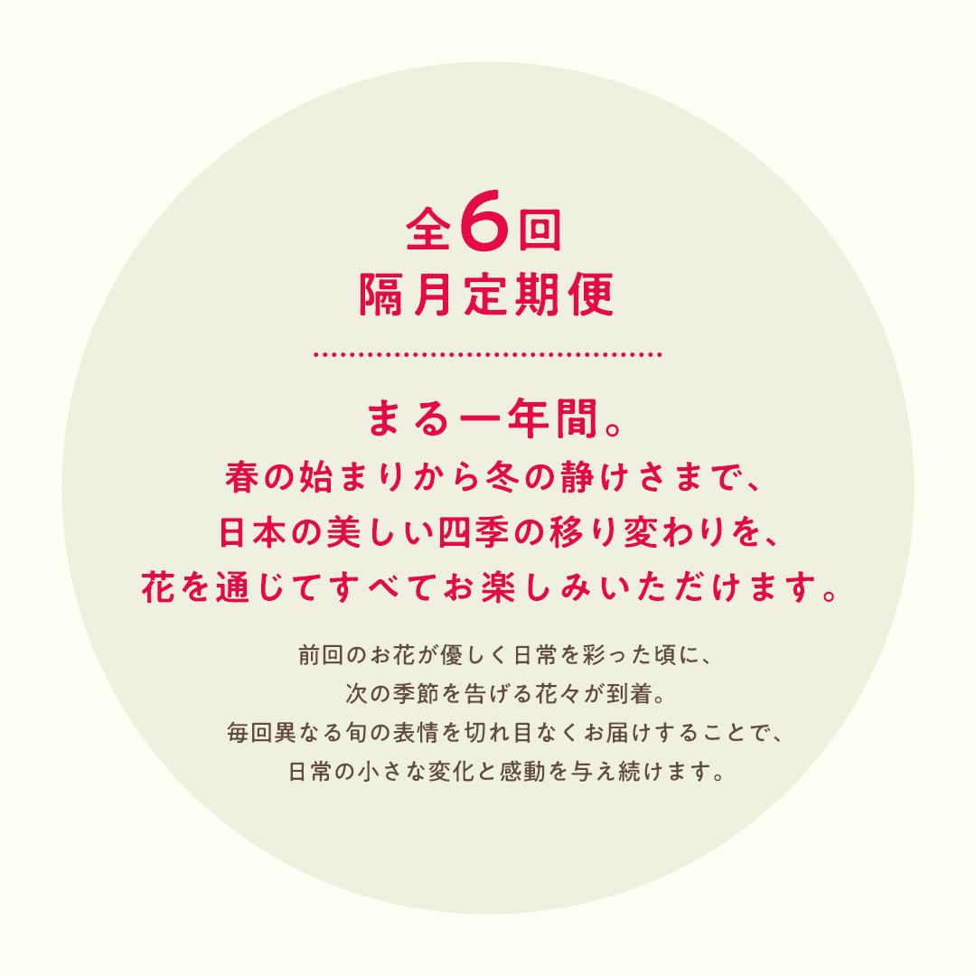 お届け予定:入金確認後、翌月より隔月お届け(全6回)