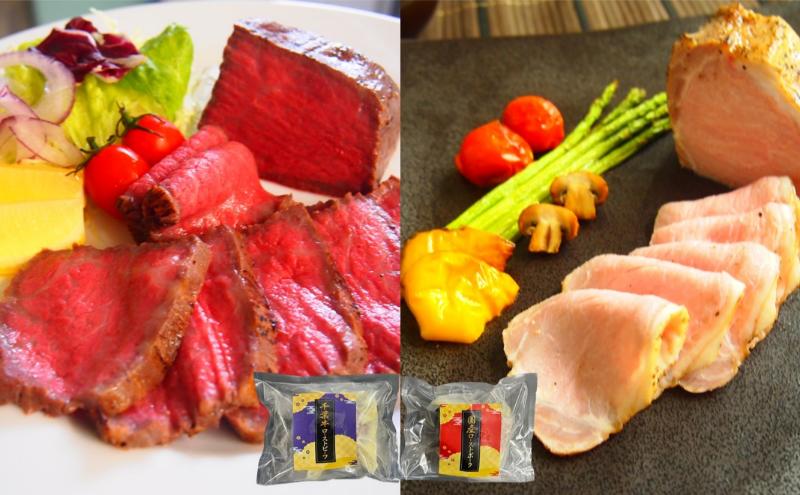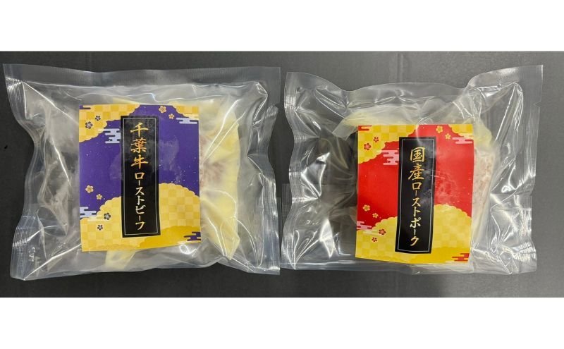 千葉県産 黒毛和牛 ローストビーフ 200g 、 茶美豚 ローストポーク 200g 各1個 計2個 化粧箱入り