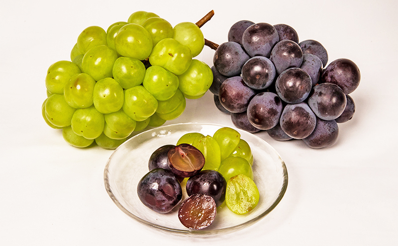 強い甘みとバランスの良い酸味を持つニューピオーネと桃のような形をした皮ごと食べられる爽やかな甘さの瀬戸ジャイアンツの詰合せ。