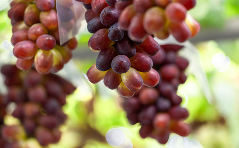 シャインマスカット『晴王(はれおう)』は、上品な香り、奥行きのある甘さ、瑞々しい果汁が特徴のいわずと知れた高級ぶどう。