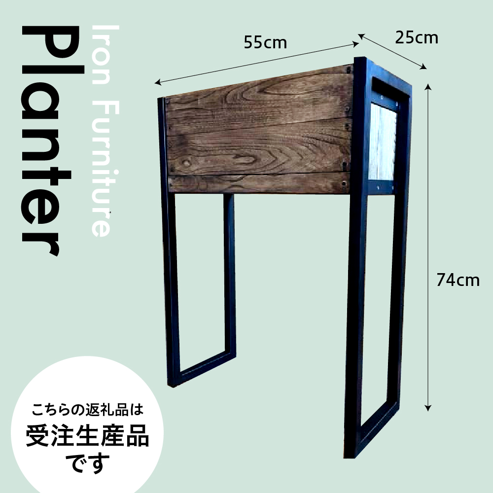 「空間に映えるひとつ上のプランター」鉄のように硬く美しい木目をもつアイアンウッド。