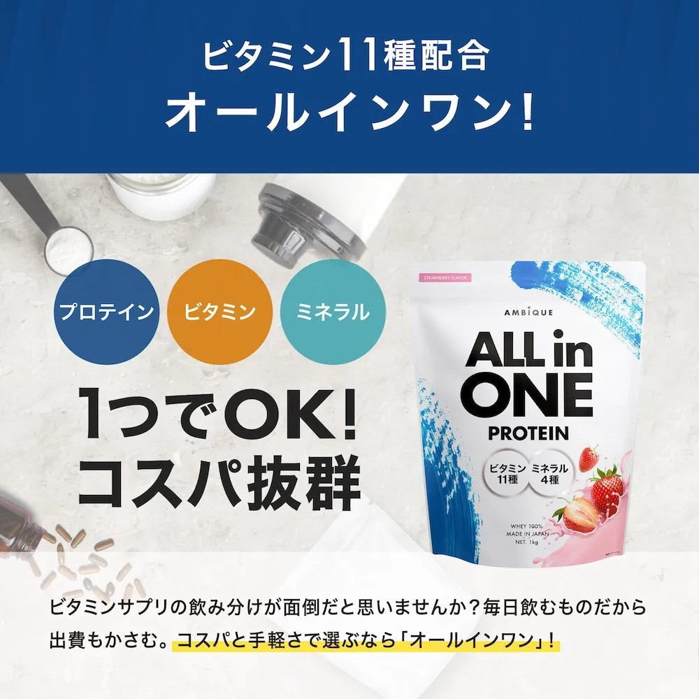 ビタミン11種配合のオールインワンプロテインなので、ビタミンサプリの飲み分けが不要。