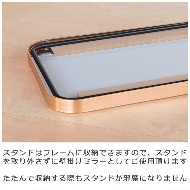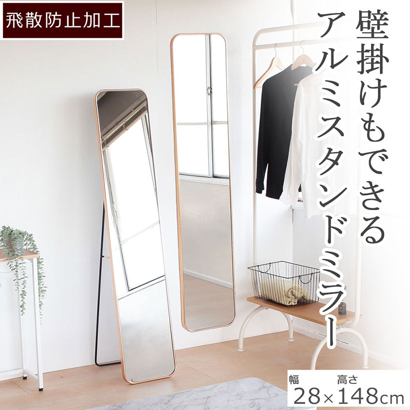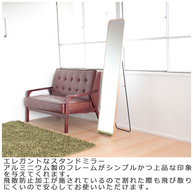 シンプルなデザインのアルミフレームスタンドミラーは、軽量でかつ丈夫な設計と洗練された外観と実用性を兼ね備えています。