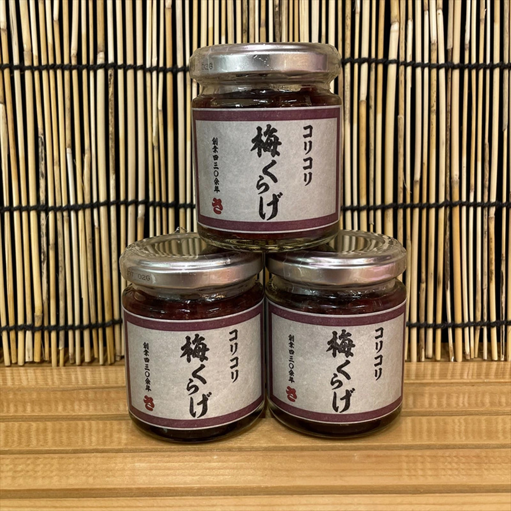 くらげ(タイ)、還元水飴、梅、赤紫蘇、たん白加水分解物、砂糖、梅果汁、かつお節、食塩、発酵調味料、かつお節エキス、合せだし(鰹、昆布)、酵母エキス/酒精、調味料(アミノ酸等)、酸味料、増粘多糖類、しそ香料、野菜色素、パプリカ色素(一部に大豆を含む)