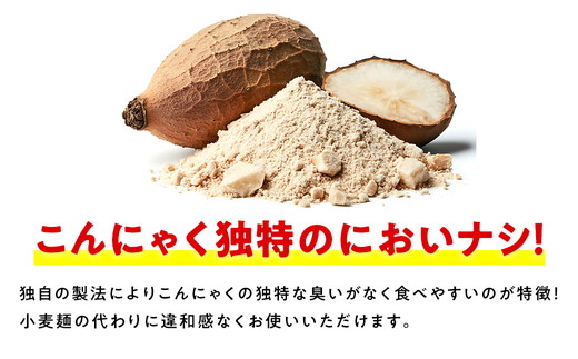おからパウダー(国内製造)、こんにゃく粉、食塩、セルロース、糊料(アルギン酸Na、サイリウムハスク、キサンタン、カラギナン)、調味料(アミノ酸等)、炭酸Ca、炭酸水素Na、塩化Ca、(原材料の一部に大豆を含む)