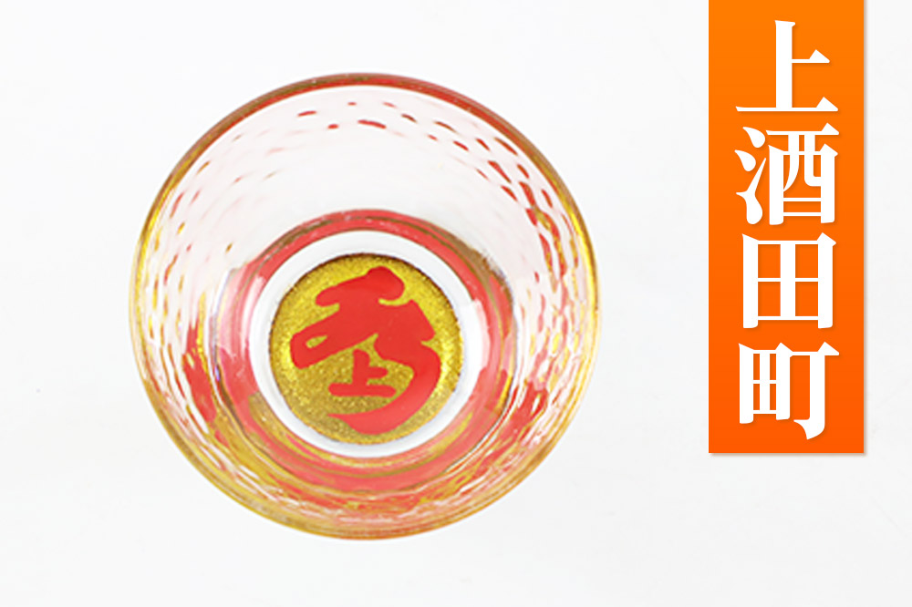 秋田のお酒を入れると底の模様がゆらめき「金の酒」になると好評を得ています。