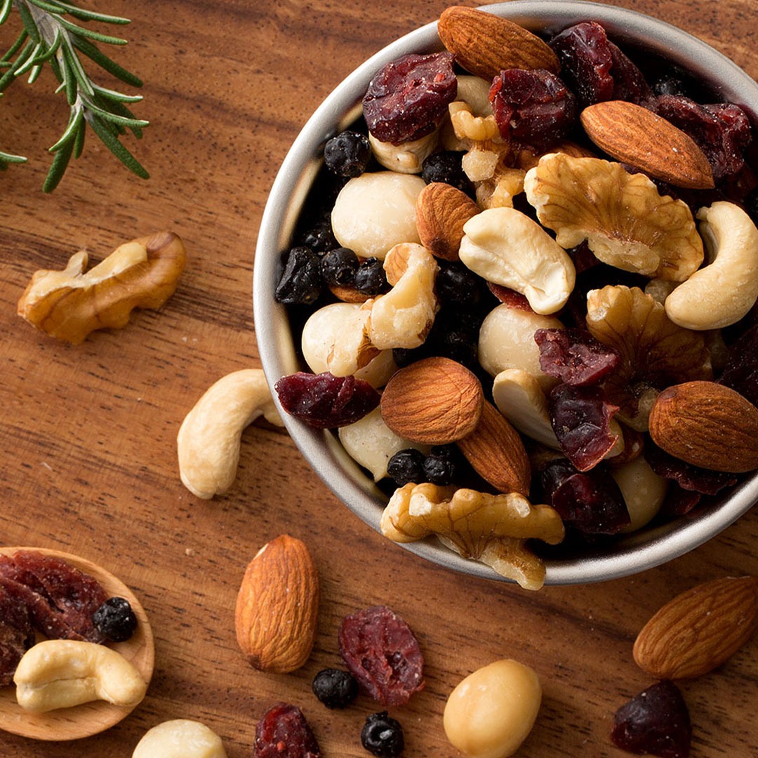 ナッツのカリッと香ばしい味わいのなかに、甘酸っぱいドライフルーツがベストバランス!