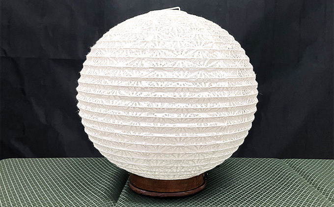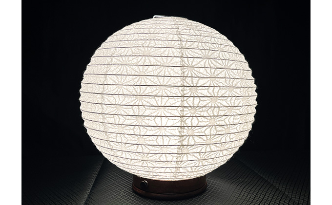 外側に麻の葉柄の手漉落水紙、内側に白色のうす美濃紙を使用して提灯の二重張の製法を用いたランプスタンドです。