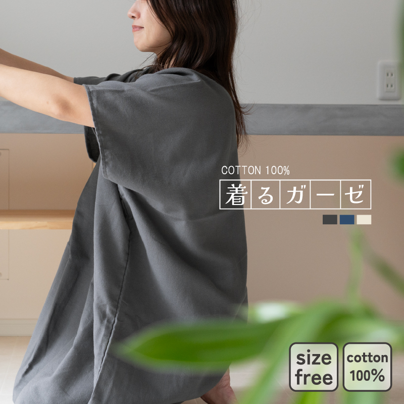 超薄手の湯上りワンピース。軽くて速乾。綿100%のガーゼ生地だから敏感肌の方も安心してご使用いただけます。