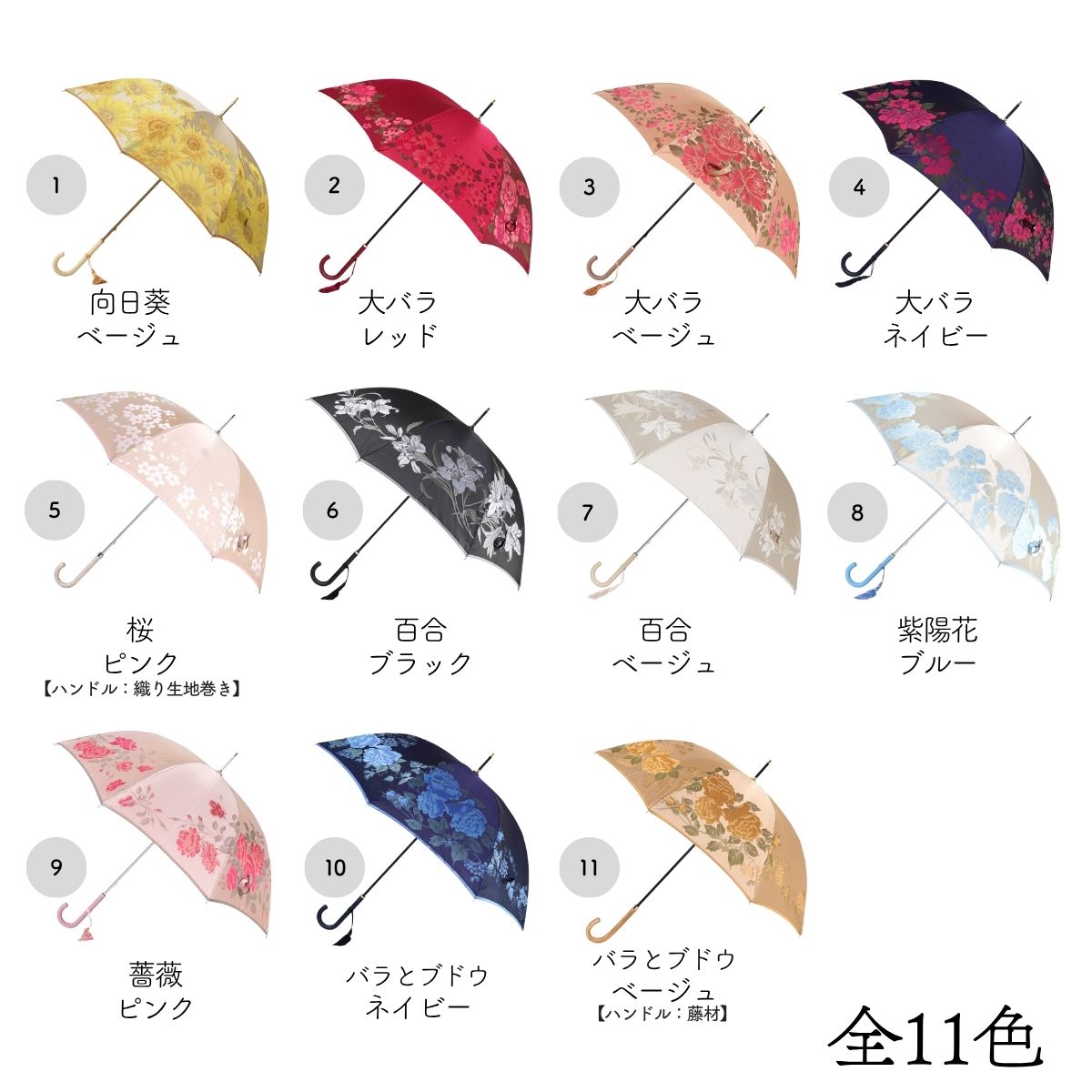タテ糸をキャンバスに、ヨコ糸を絵筆に見立て、季節の美しい花々を織り描きました。傘に大きく咲き誇る華麗な花たちは、ダイナミックさと繊細さを兼ね備え、見る人の心を惹きつけます。花束を思わせるデザインは、織物ならではの高級感とも相まって、贈り物にも最適な1本です。