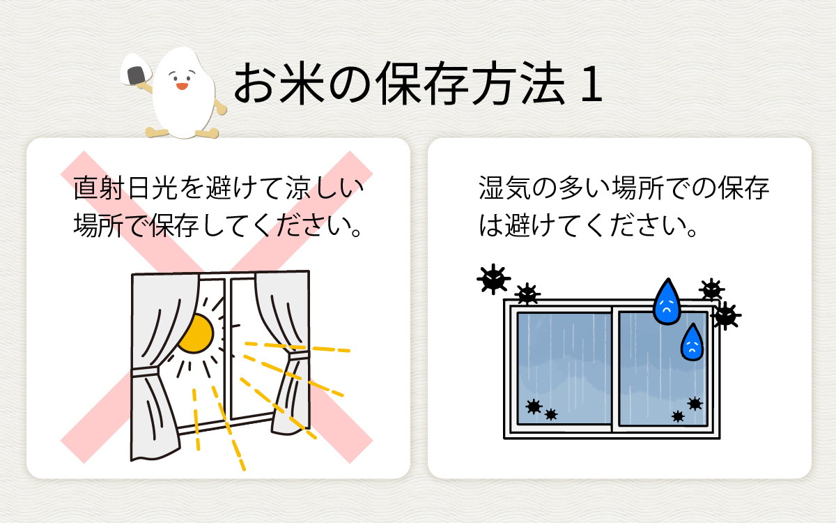 ・直射日光を避けて涼し場所で保存。