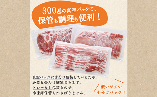 鹿児島県産黒豚 バラ300g×1パック、ロース300g×1パック、肩ロース300g×1パック