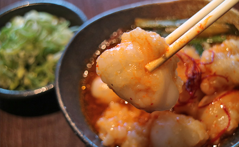 厳選した国産牛の小腸のみを使用し、丁寧に下処理を施すことで臭みがなく、口の中でとろけるような甘い脂と、ぷりぷりとした食感をお楽しみいただけます。