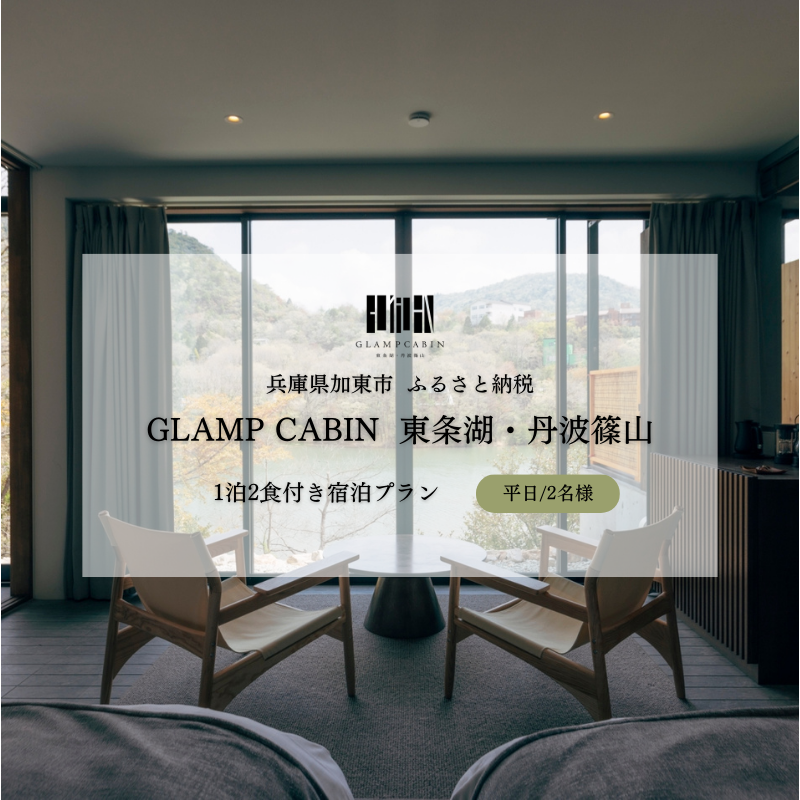 GLAMPCABIN 東条湖・丹波篠山「プライベートキャビン」平日限定 ペア宿泊券(1泊2食付)
