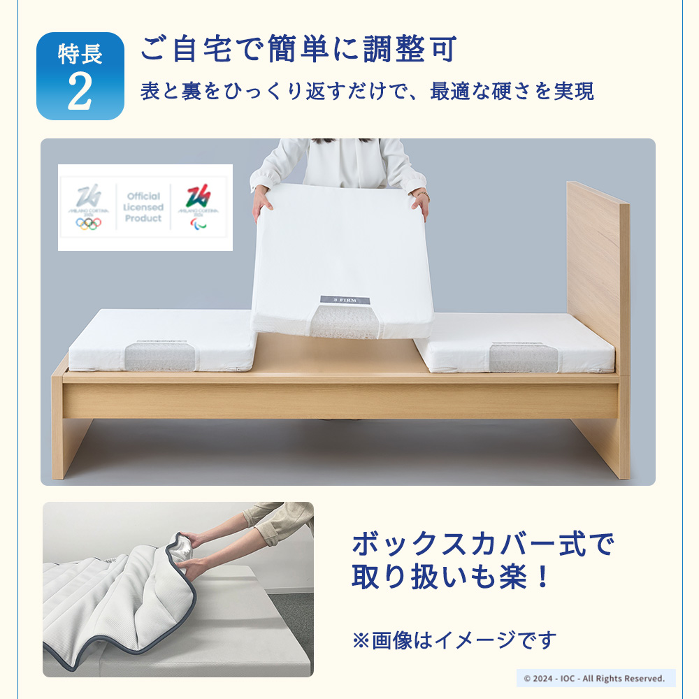 ※本返礼品は、中の素材が3分割されており、各ブロックの表裏で硬さが異なります。配置や向きを入れ替えるだけで、体型や好みに合わせてパーツごとに硬さを調整できるマットレスとなります。
