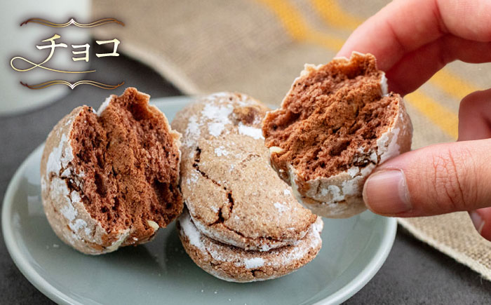 生地は糸島産の「いろどり卵」から作るメレンゲとアーモンドを合わせ、一つ一つ丁寧に手絞りをして焼き上げました。