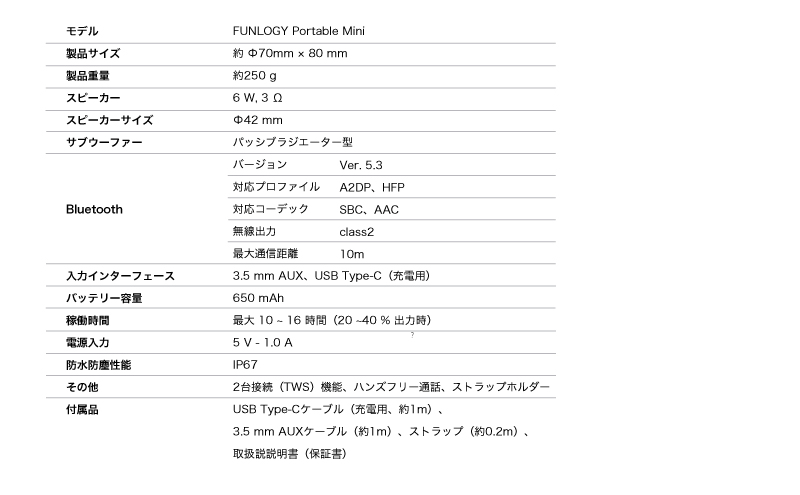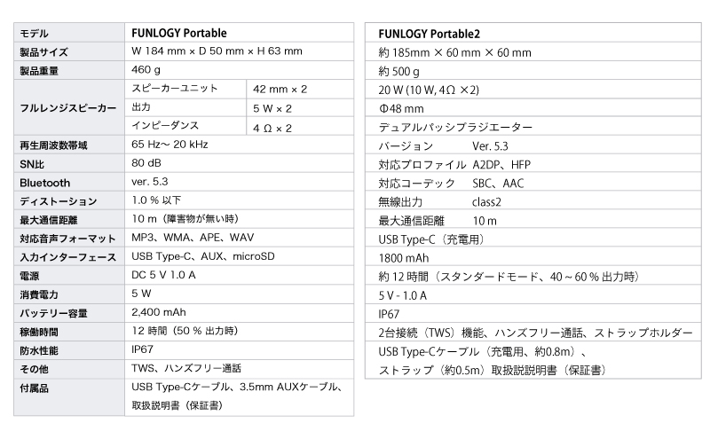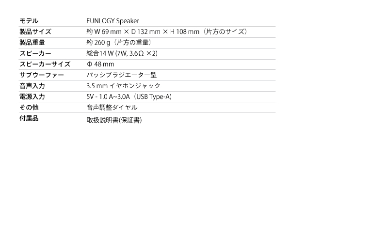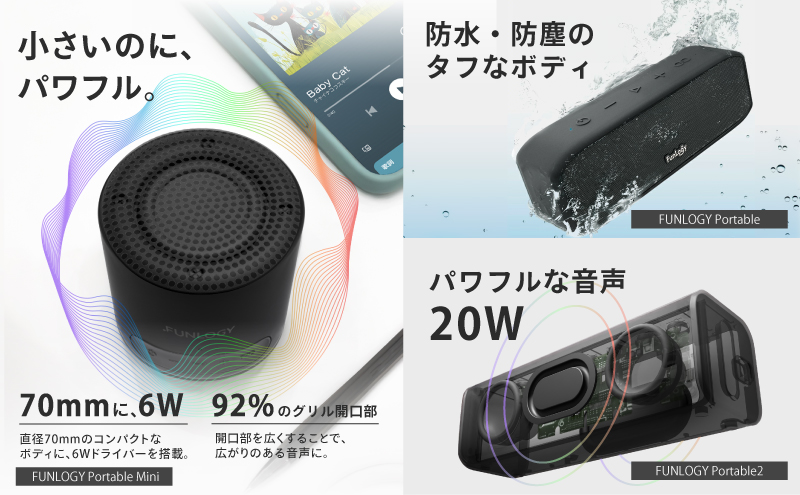 FUNLOGY Speakerブラック 1セット、FUNLOGY Soundbarブラック 1台、FUNLOGY Portable Miniホワイト 1台 FUNLOGY Portable2ブラック 1台、FUNLOGY Portableブラック 1台、その他付属品