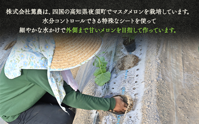 水分コントロールできる特殊なシートを使って、細やかな水かけで外側まで甘いメロンを目指して作っています。