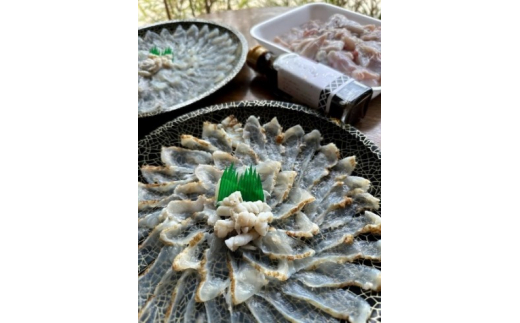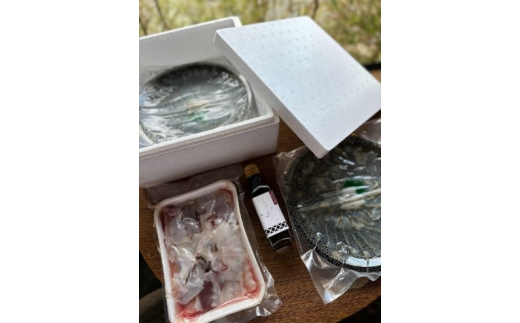 萩産天然真ふぐ(桜ふぐ)200g・あら300g・から揚げ200g・ぽん酢100cc