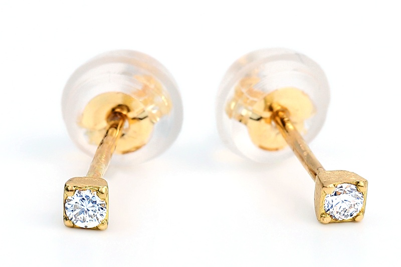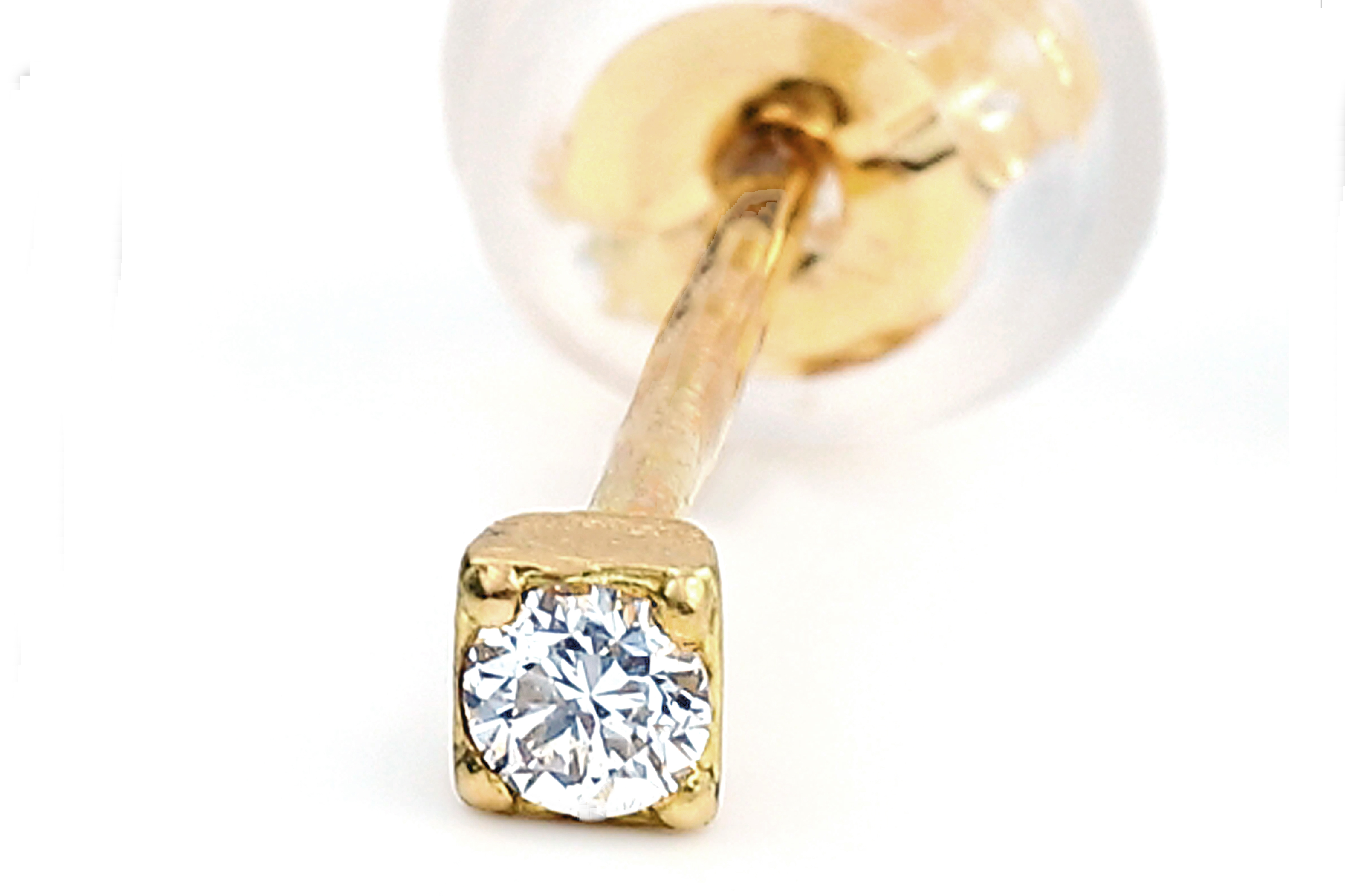 トータル0.04CTのダイヤモンドを使用した、非常に小さなピアスです。写真では大きさが判りにくいかと思いますが、1.7mm前後のダイヤモンドを使用していますので、本当に小さなピアスです。セカンドピアスとは、ファーストピアスの装着期間を経てピアスホールが安定してきたときに着けるピアスの事ですので、ピアスホールを育てるのに非常に大切なピアスとも言えます。