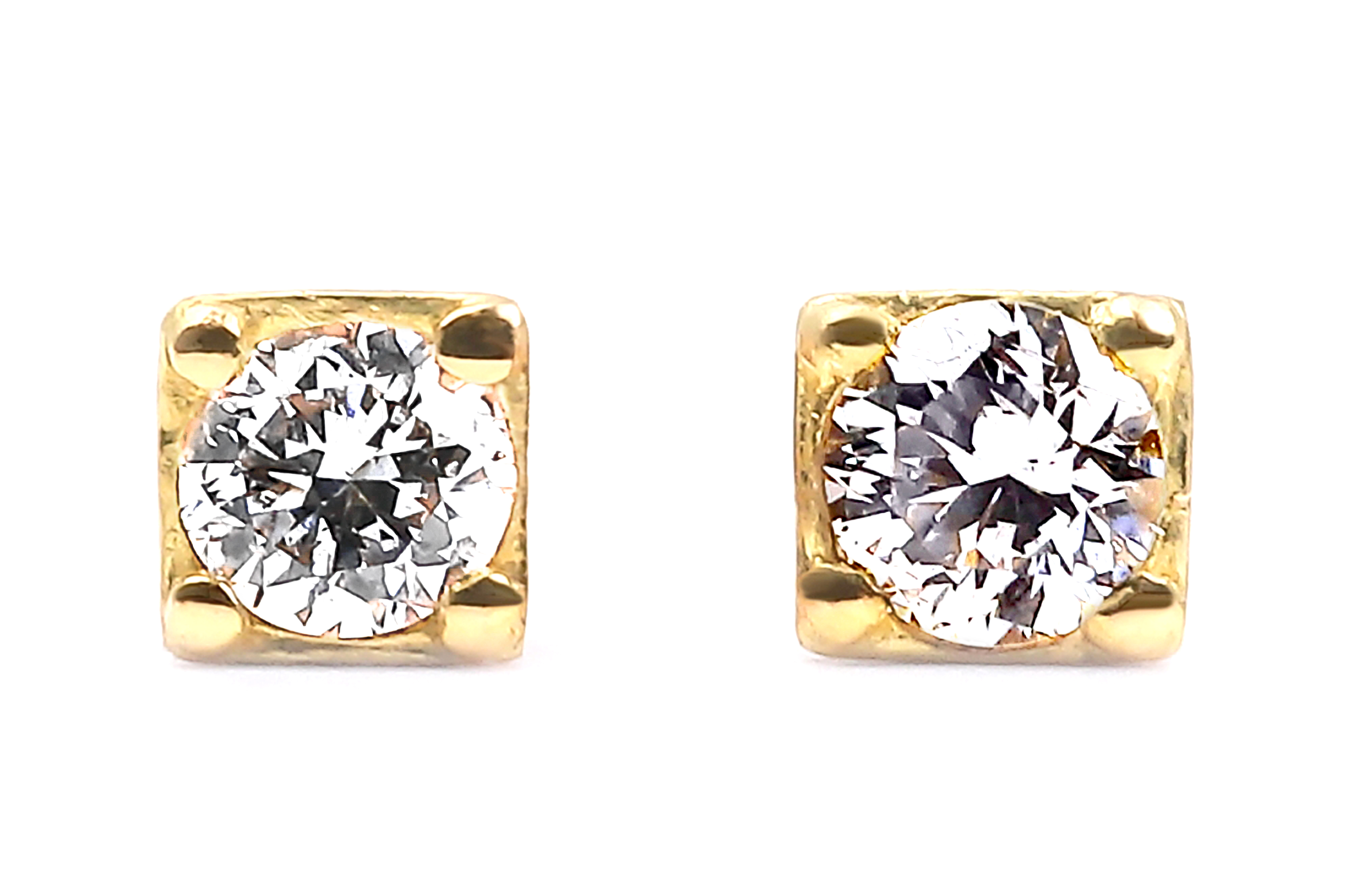 ポストの太さは0.7mmで程よいサイズになっており、K18金とダイヤモンドの煌きが品よく耳元を飾ってくれる品物です。もちろんセカンドピアス以降の方にもさりげない普段使い用のピアスとしてお使い頂ける様に、枠にサティーナのつや消し加工を施してエレガントに仕上げています。