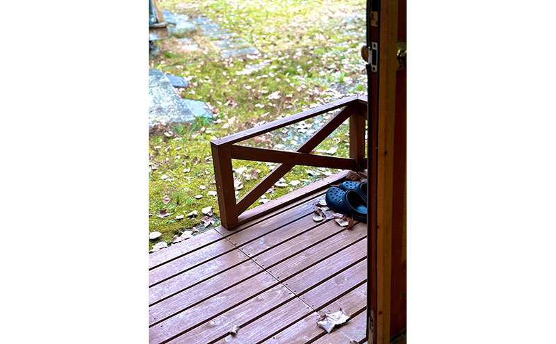 わんちゃん連れのお客様には、専用ログハウスやテラス、自由に走り回れる庭をご用意。