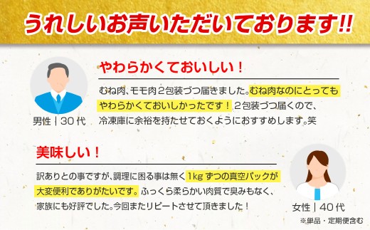 今回は宮崎県若鳥のモモ肉とムネ肉を各2kgずつ合計4kgを6回定期便にてお届けいたします。