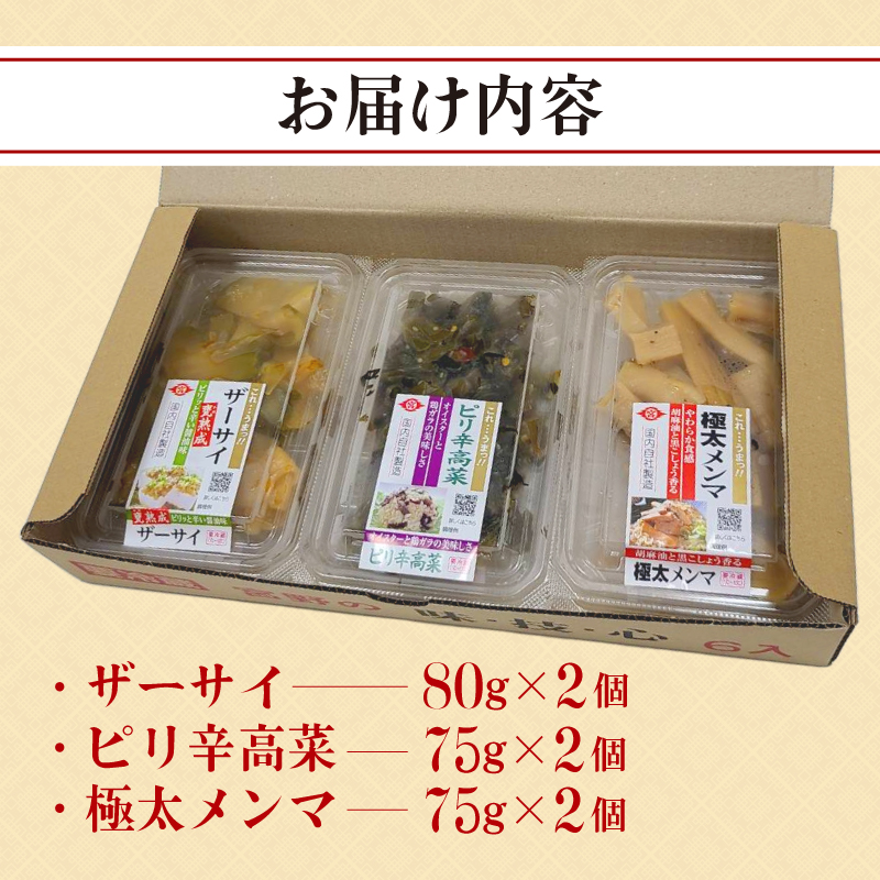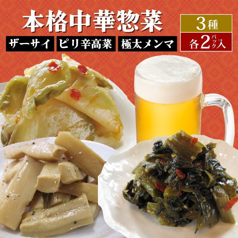 中華 惣菜 3種 セット ザーサイ 高菜 メンマ サラダ おつまみ おやつ 冷蔵 3種詰め合わせ ごはんのお供 本格中華 簡単 時短 宮野食品工業所 新潟県 新発田市
