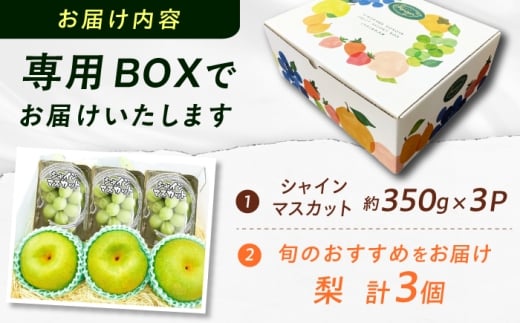 - シャインマスカット:約350g×3パック 梨:3個 ※お届け時期によって梨の品種が異なります。 【原料原産地】 八女郡広川町