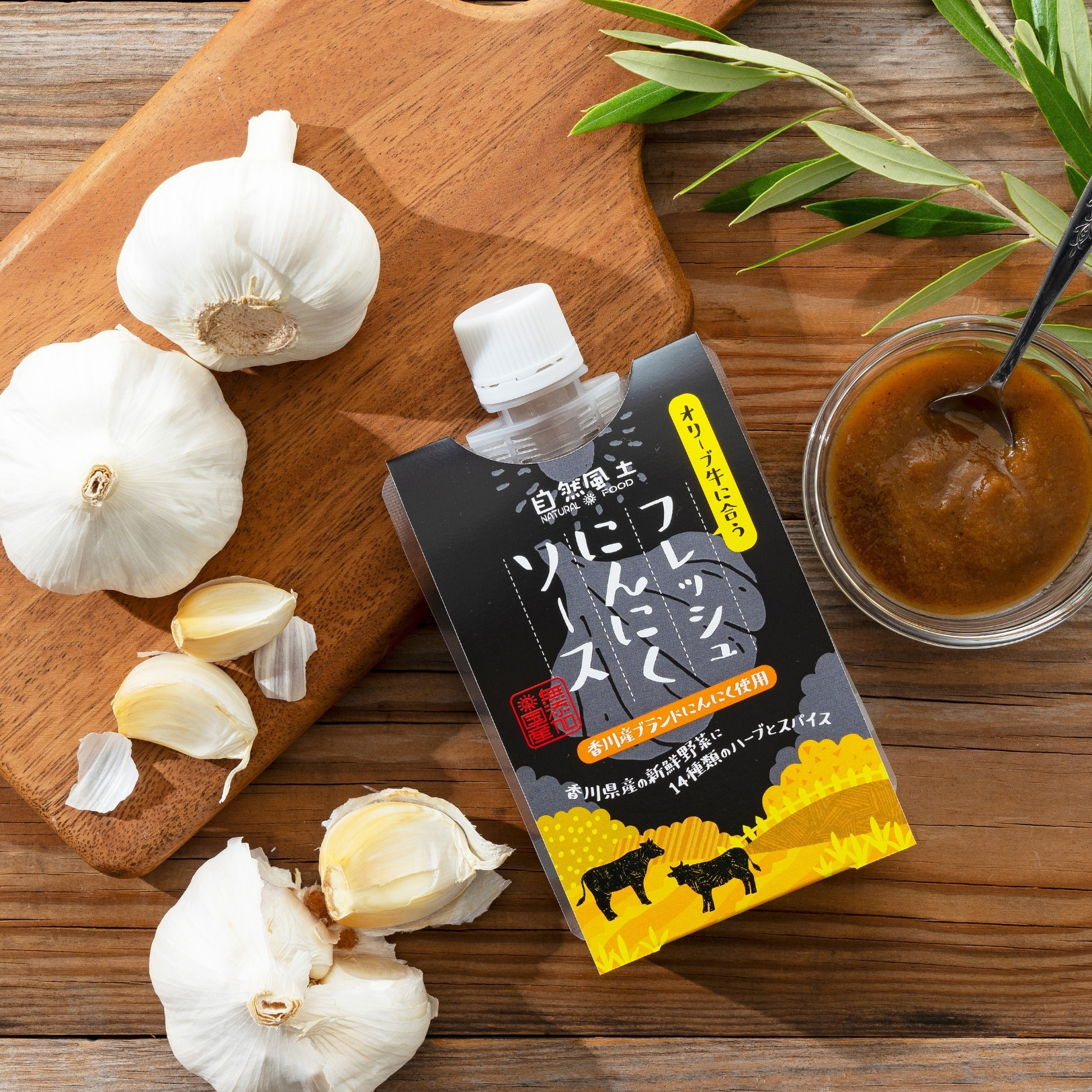 香川県産にんにくをたっぷり使い、オリーブ牛に合うように開発された特製ソース。