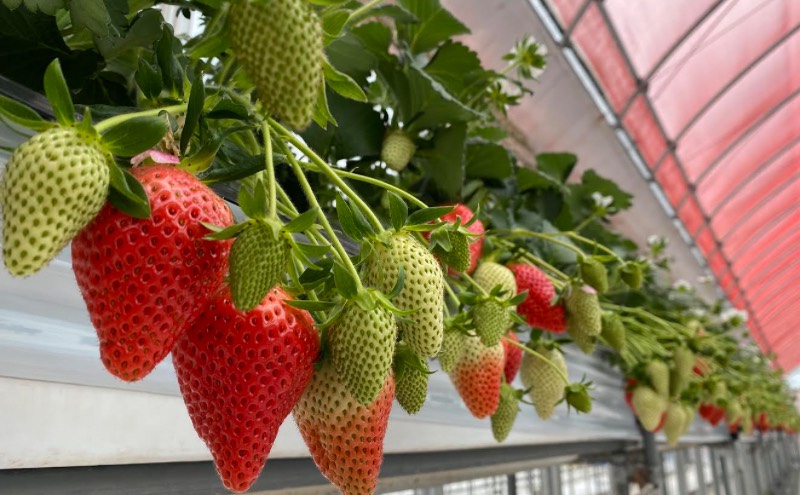 甘みと酸味のバランスがよい「紅ほっぺ」、ビタミンC含有量が多く味の濃い「おいCベリー」などさまざまな品種(6~7品種)を栽培しており、その中からその時期のおすすめの品種をお選びします。