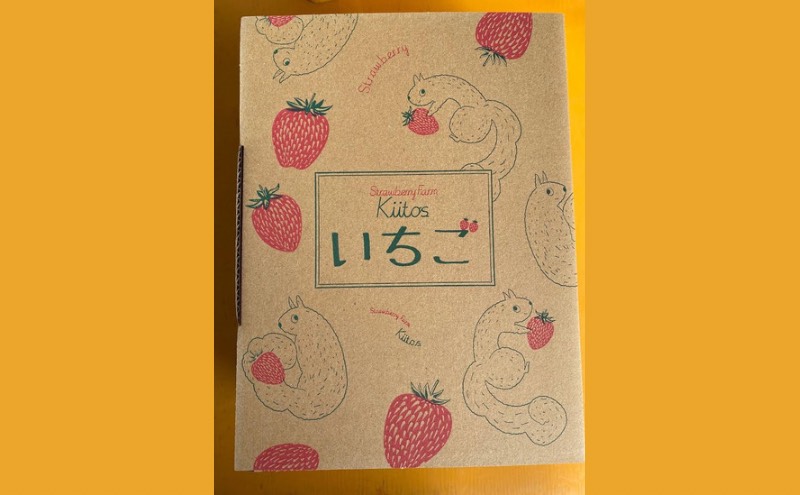リスの柄のギフト箱に甘さを蓄えながらゆっくりと育ったいちごを詰めてお届けします。
